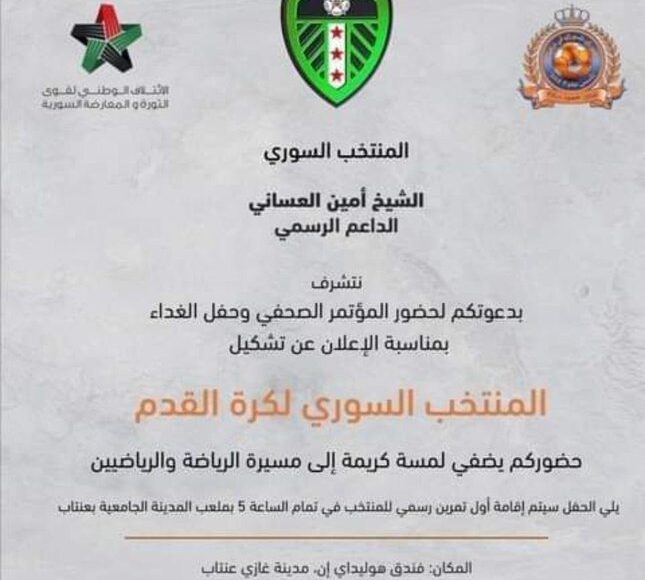 سوف يتم الأعلان عن ولادة منتخب سوريا الحر في مدينة غازي عنتاب التركية في مؤتمر صحفي يوم السبت الموافق ل 21-11-2020 وذلك برعاية أمين العساني الداعم الرسمي للمنتخب.